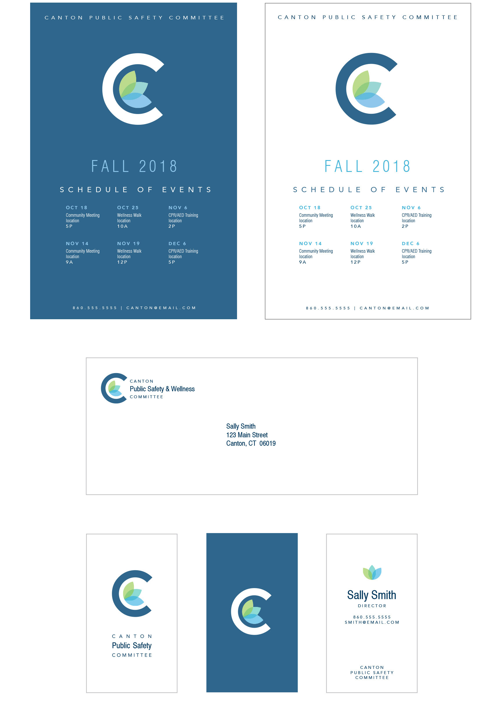 I designed a logo, business card, letterhead, and poster layout for the Canton Public Safety Committee. The client wanted to incorporate themes of wellness and safety so I used the lotus flower motif nested inside of a strong C.