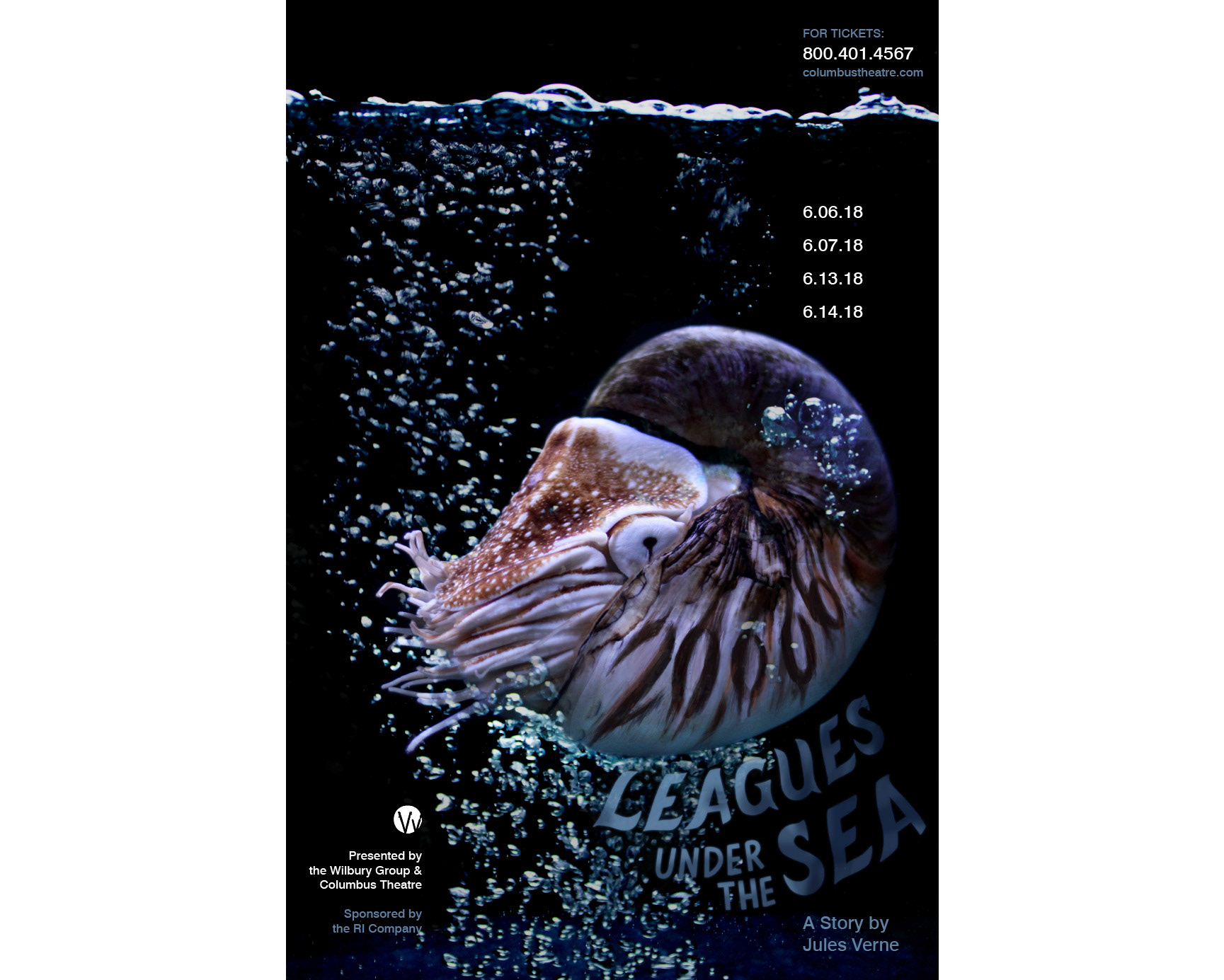 I created this by layering images that I took of water with an image of a nautilus. The title text is hand-lettered.